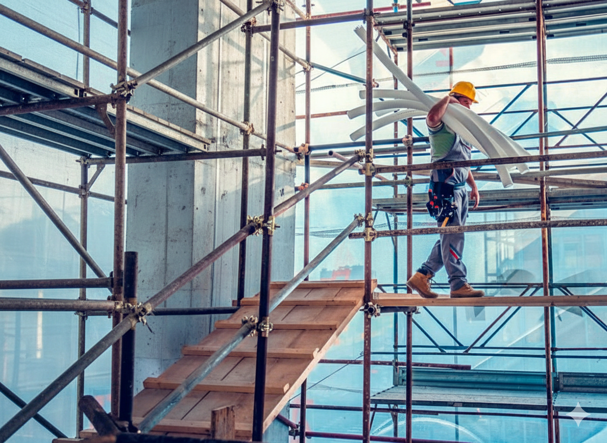 This type of scaffolding uses tubes and fittings (T&F) to create a temporary structure for supporting work platforms and materials during construction. It's versatile and can be adapted to various shapes and heights.